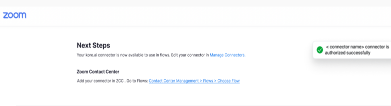 - Setup and Configuration: Kore.ai sets up and configures the integration between their AI Agent and ZCC. This involves installing specific connectors provided by Zoom and configuring the settings to establish a connection.