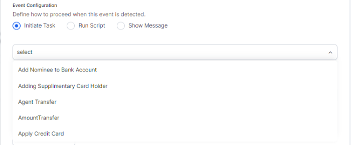 Initiate Task: Select a task from the dropdown menu that initiates on detecting the event.