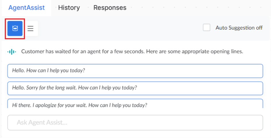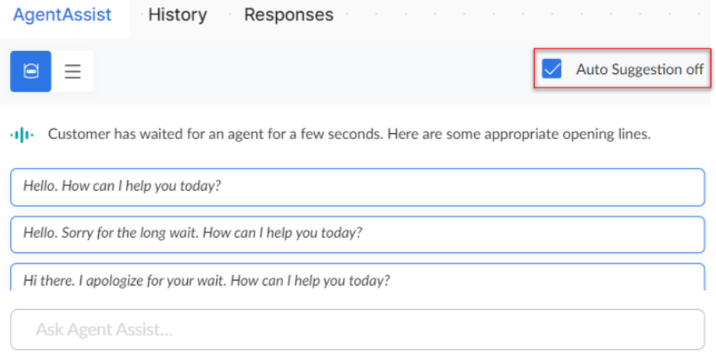 Proactive suggestions: Use this option to enable or disable Agent AI auto suggestions for the next action.