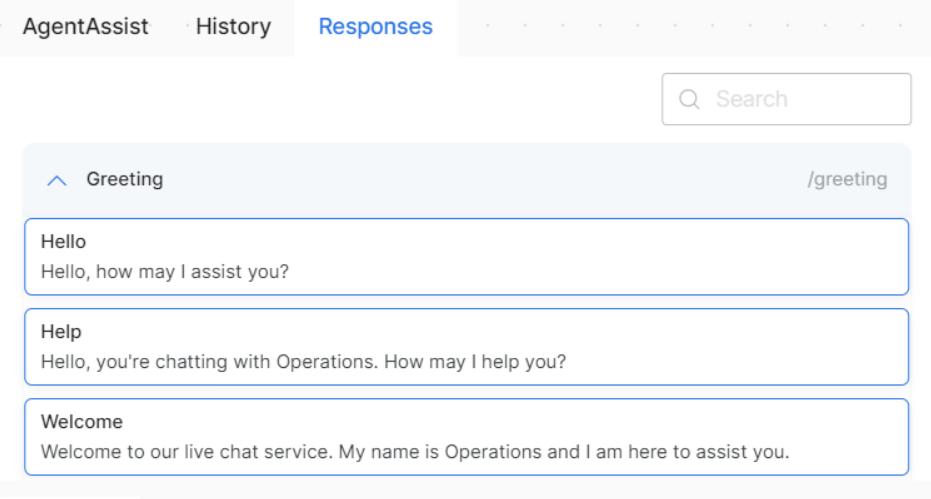 Agents can send canned responses to customers based on their specific scenarios using the Responses widget.