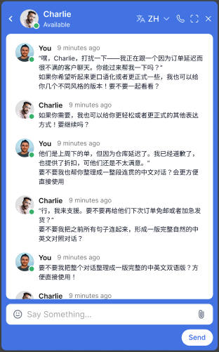 - The conversation appears in the selected language.