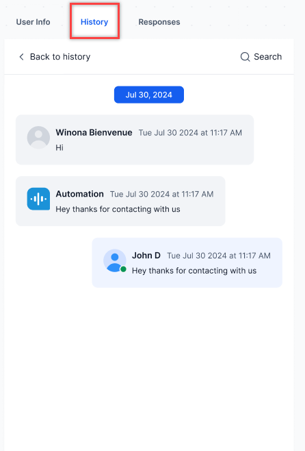 - Click the History tab to view past conversations.
