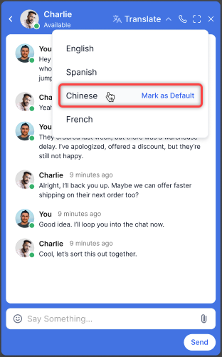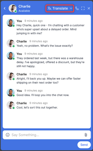 Contact Center administrators can enable translation for agents' internal chats. Learn more.