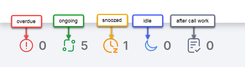 - Overdue: These are conversations where the agent hasn't responded to the customer within the system-specified time.