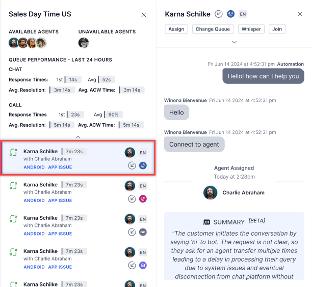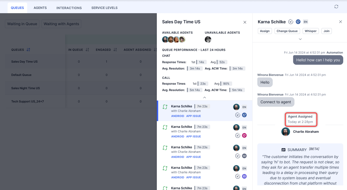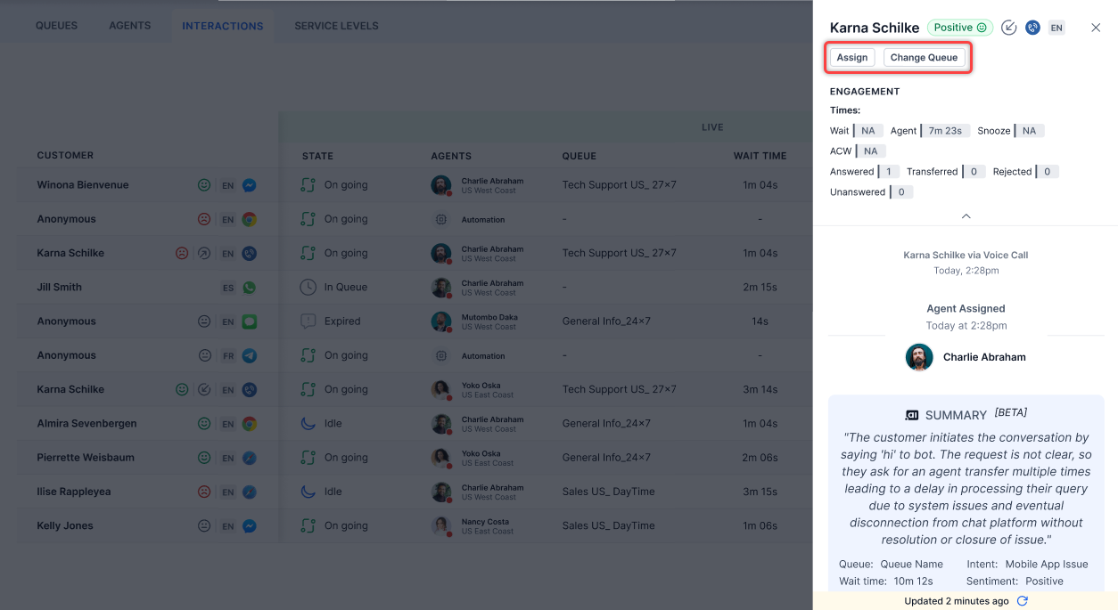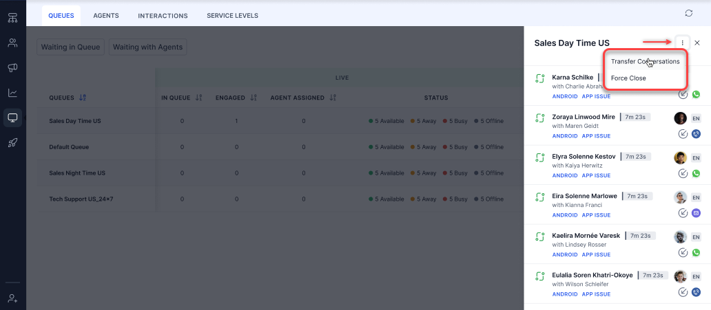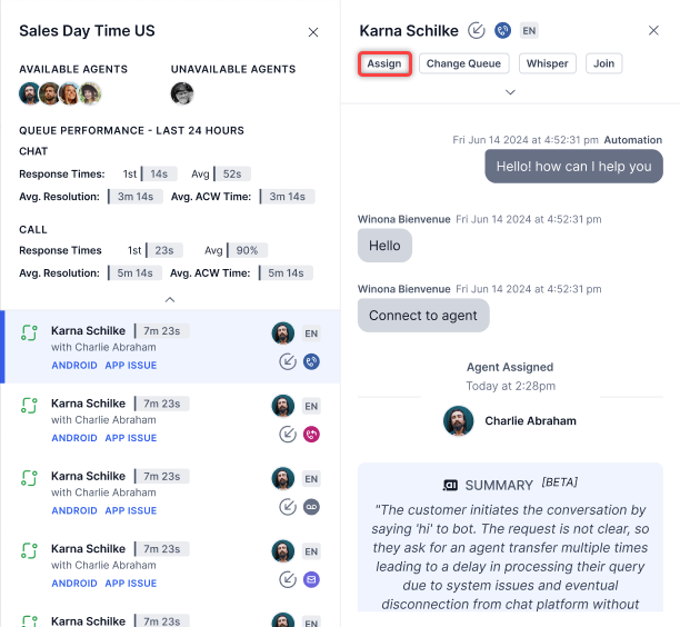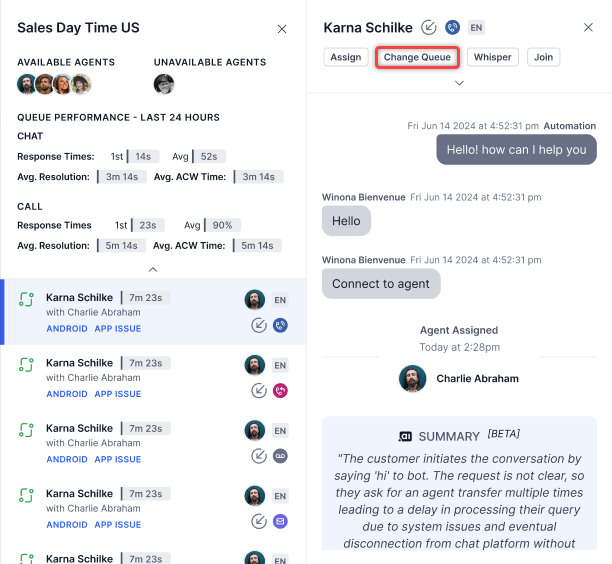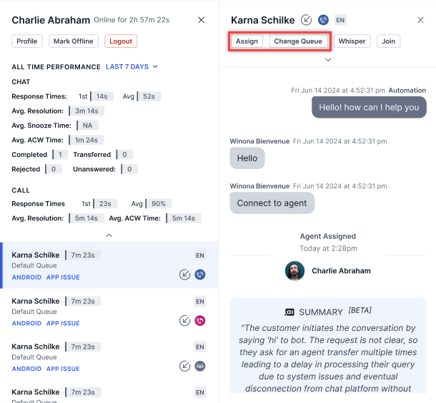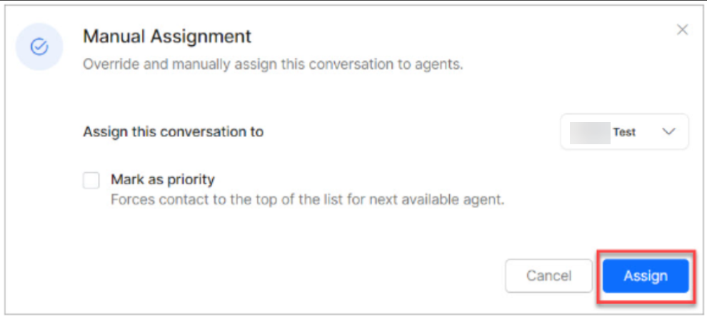 Manually Assign Conversations to an Agent and Change Queue¶