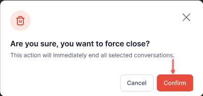 - A confirmation pop-up displays. Select Confirm. The selected conversations close across their respective channels.