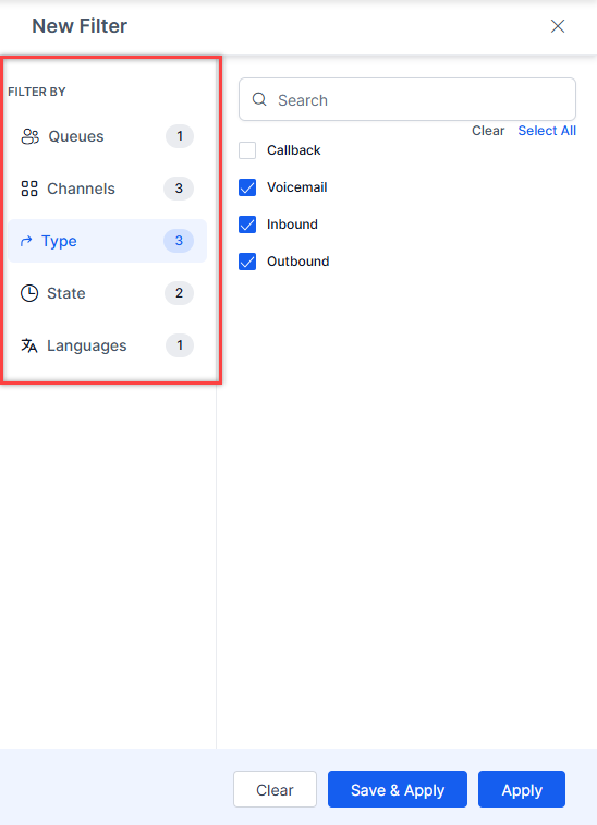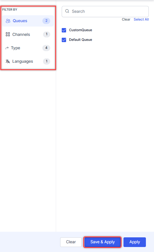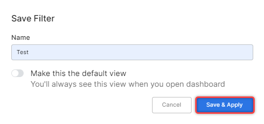 - Save & Apply - Saves the filter, and it appears when selected.