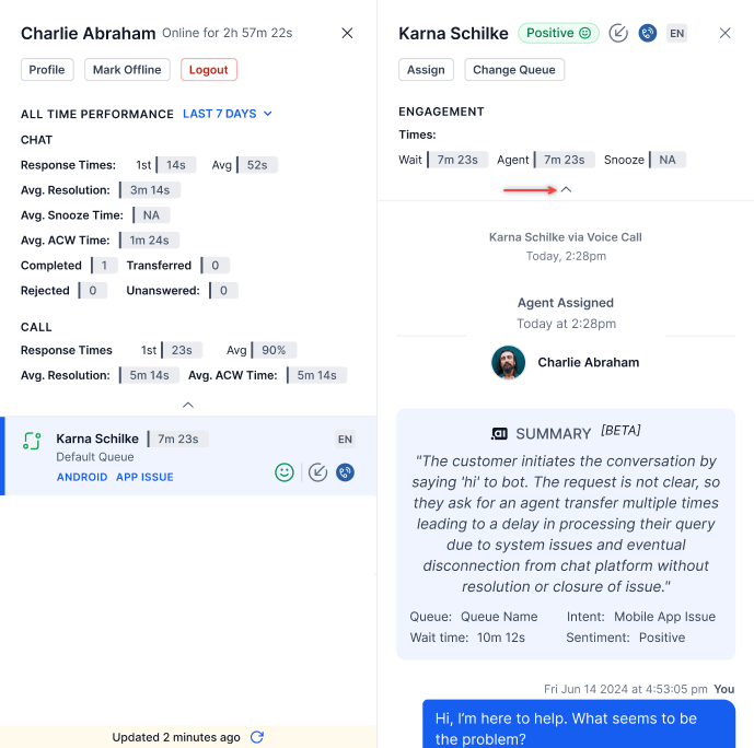 The assigned agent’s name appears immediately upon assignment, even if the agent hasn't sent a response.