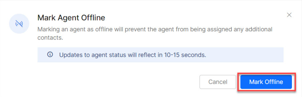 You can mark an agent as offline to prevent assigning the agent to any other customers.