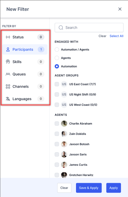 Bot-led interactions don't appear by default, even when bot-led interaction permission is enabled for a role. To view these interactions, supervisors must explicitly select 'Automation' or 'Automation/Agents' from the Participant filter. The default setting remains "Agent" regardless of permission settings to prevent supervisors from being overwhelmed with automation conversations. This keeps automation conversations hidden unless specifically requested while maintaining the flexibility to include them when needed.