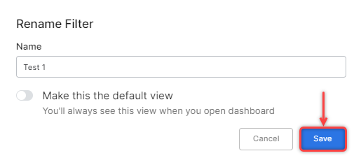 On the Rename Filter window, enter a name for the filter and select Save.