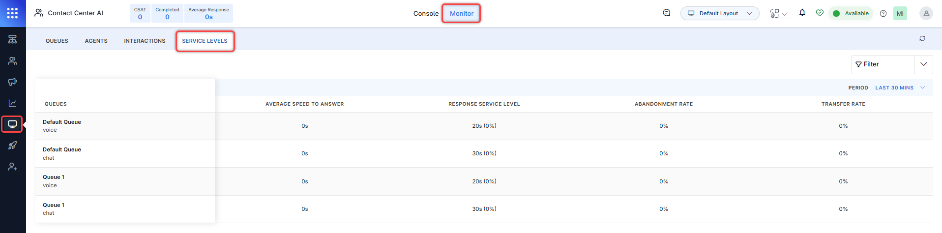 Monitor Queues, Agents, Interactions, and Service Levels¶