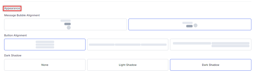 Appearancesection, select theMessage Bubble Alignment,Bubble Alignment, andDark Shadow.