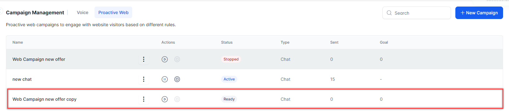 Cloning a proactive web campaign creates a replica of the original campaign. This is useful when two or more similar campaigns run simultaneously.