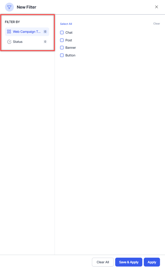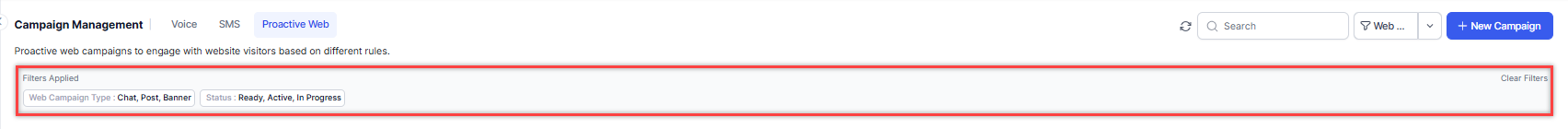 Web Campaign TypeandStatus, and choose their respective sub-filters.