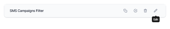 Filtersdropdown to view Saved Filters. Hover over the saved filter to view the following options:- Duplicate