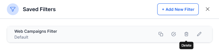 Click the Filters dropdown to view Saved Filters. Hover over the saved filter to view the following options: