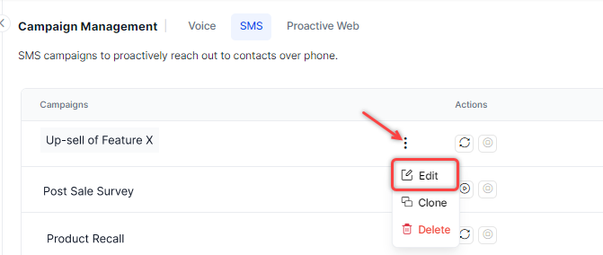 Steps to edit an SMS campaign: