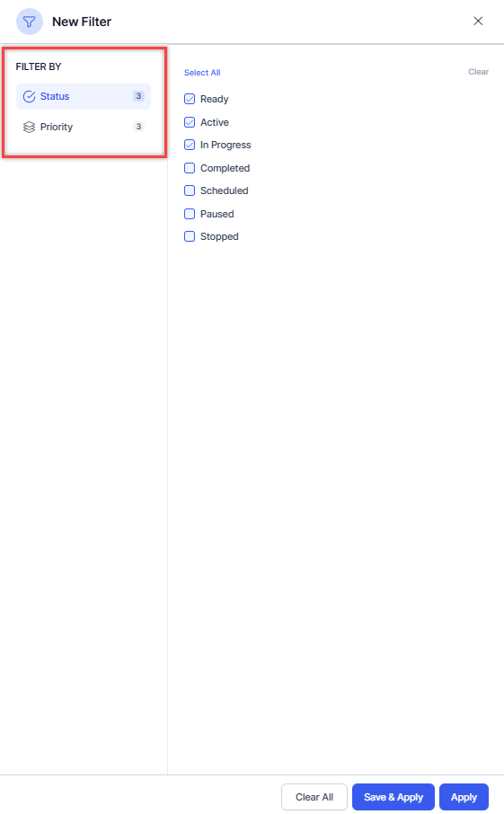 Select the Status and Priority, and choose their respective sub-filters.