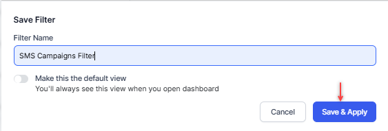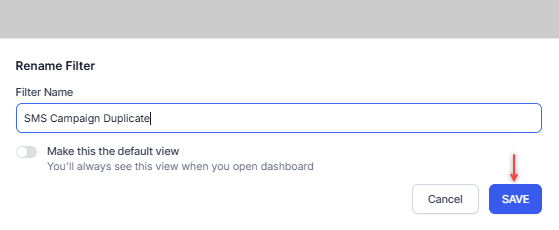 Turn on the Make this the default view toggle to view the filter as the default filter on the voice campaigns tab.