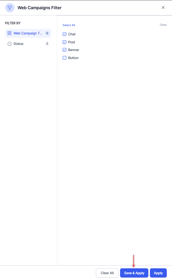 2. Save & Apply – Saves the filter, and it appears when selected.