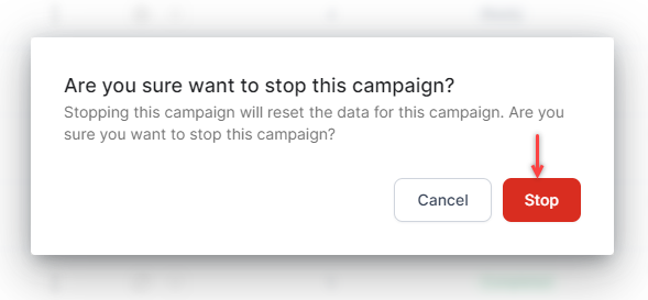 Stopping an SMS resets the data, the campaign status changes to Stopped, and a new instance of the campaign is created when you rerun the campaign.