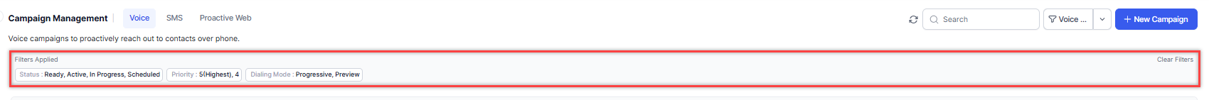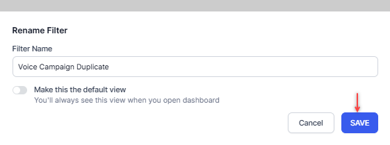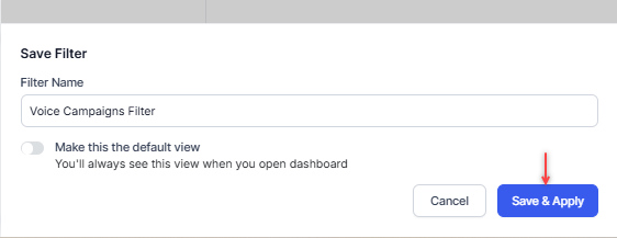 Turn on the Make this the default view toggle to view the filter as the default filter on the voice campaigns tab.