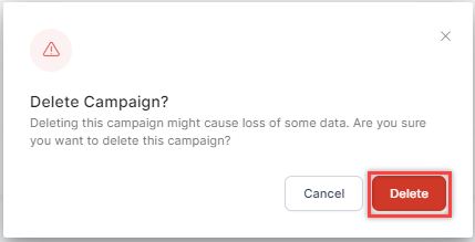 A Delete Campaign confirmation pop-up window appears. Select Delete.