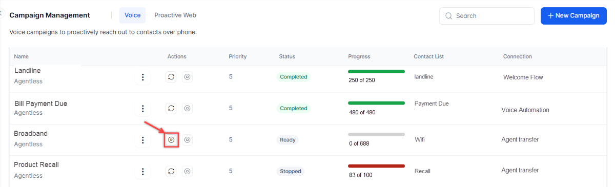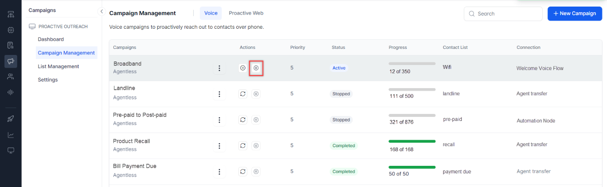 Editing a voice campaign lets you to make changes to the campaign per your needs.