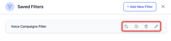 Select the Filters dropdown to view Saved Filters. Hover over the saved filter to view the following options: