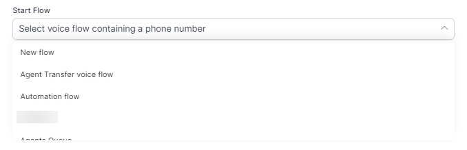 For all voice campaigns (agentless, progressive, and preview), experience flows and caller IDs (phone numbers) are decoupled. The phone number used as the caller ID for a campaign does not need to be linked to the attached experience flow. It can be an independent number or a number associated with a different experience flow. To use phone numbers or SIP numbers in a campaign, the Outbound option must be enabled for those numbers. All outbound-enabled numbers appear in the campaign configuration drop-down list.