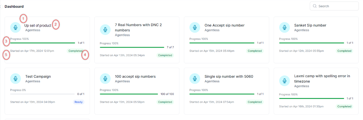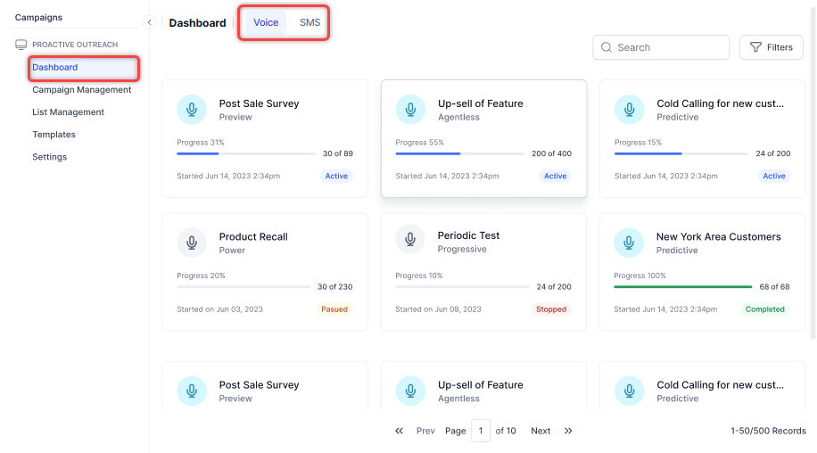 To access dashboards, go to Contact Center AI > Campaigns > Dashboard.