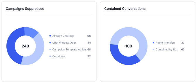 The Proactive Web Campaigns Dashboard provides metrics based on website visitor behavior. It supports filtering by campaign executions and date range for analysis.