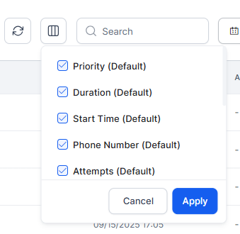 | Sorting | - Initial sort by Start Time (most recent first) - Sort by Priority - Sort by Disposition |