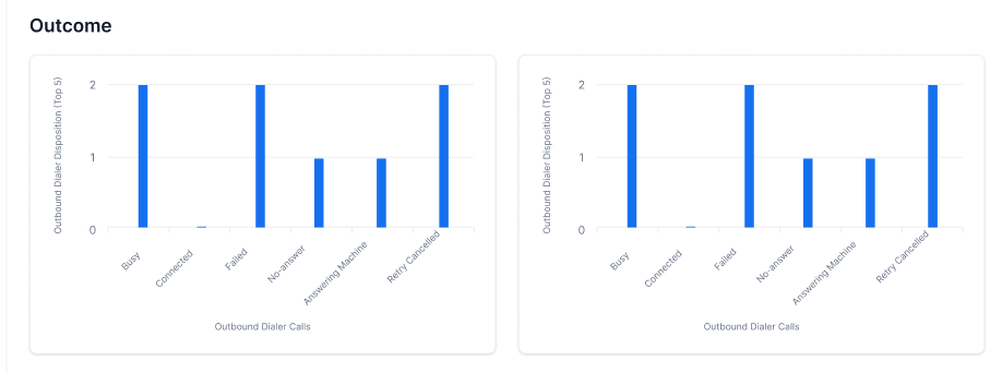 The Outcome section presents detailed insights into call dispositions for outbound dialer campaigns.