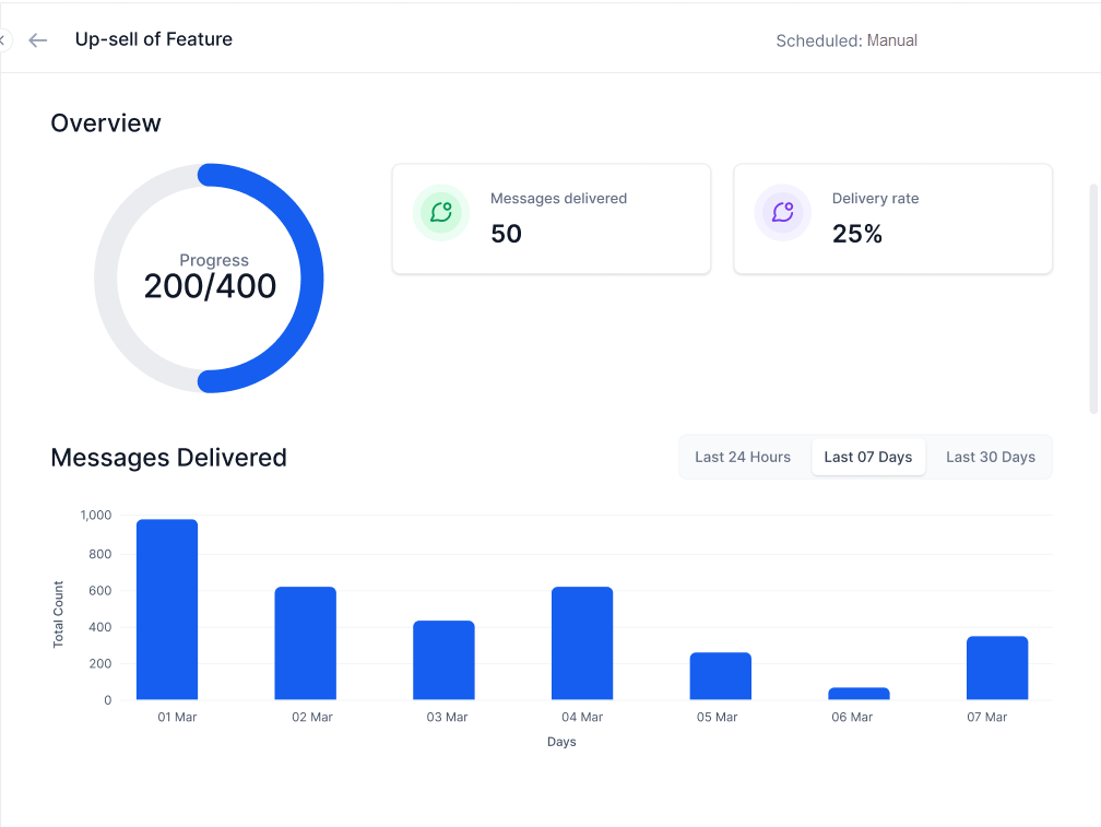 The campaign dashboard lets campaign managers to track the progress and other essential metrics related to campaigns.