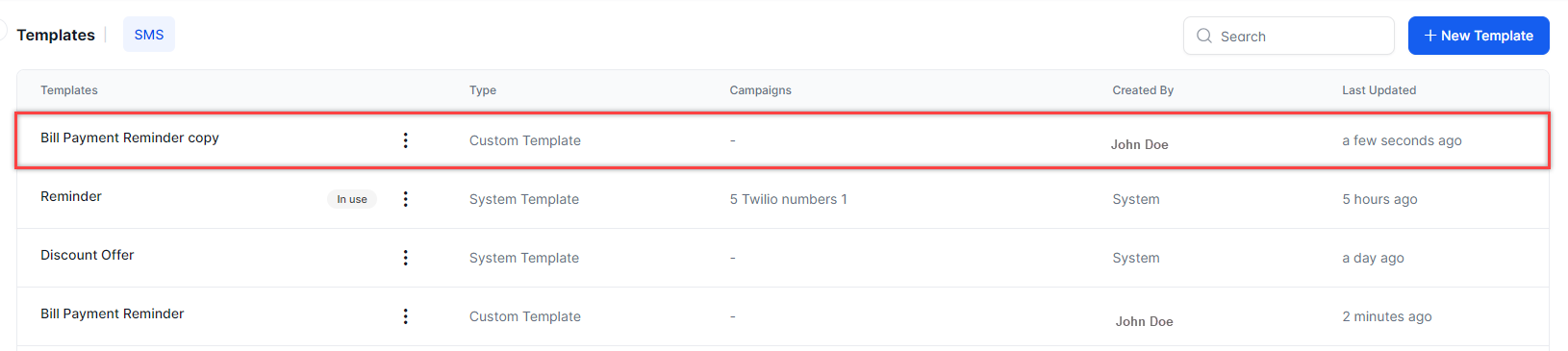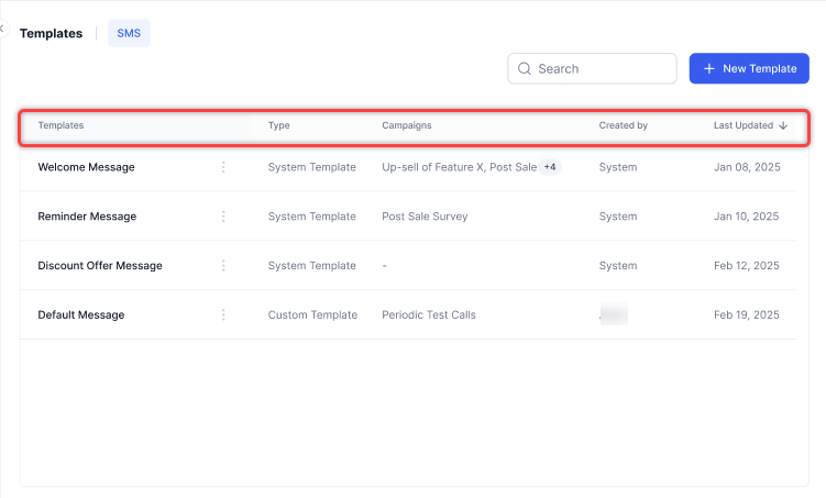 - Last Updated: The date when the template was updated. Default sorting is based on the last updated date.