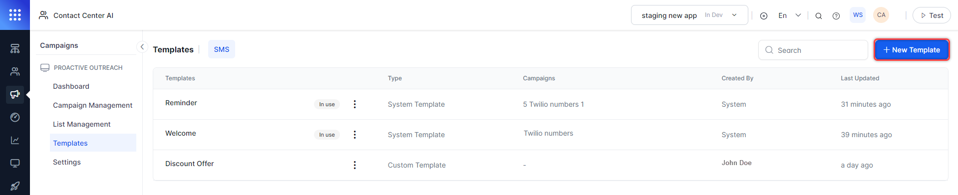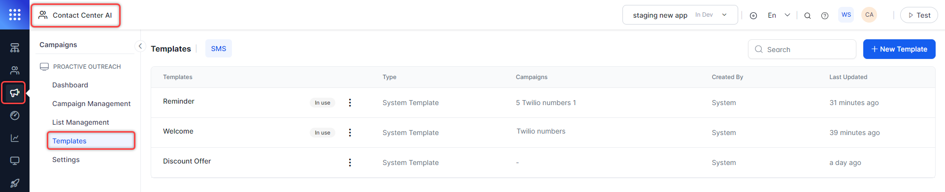 You can access templates by going to Contact Center AI > Campaigns > Templates.