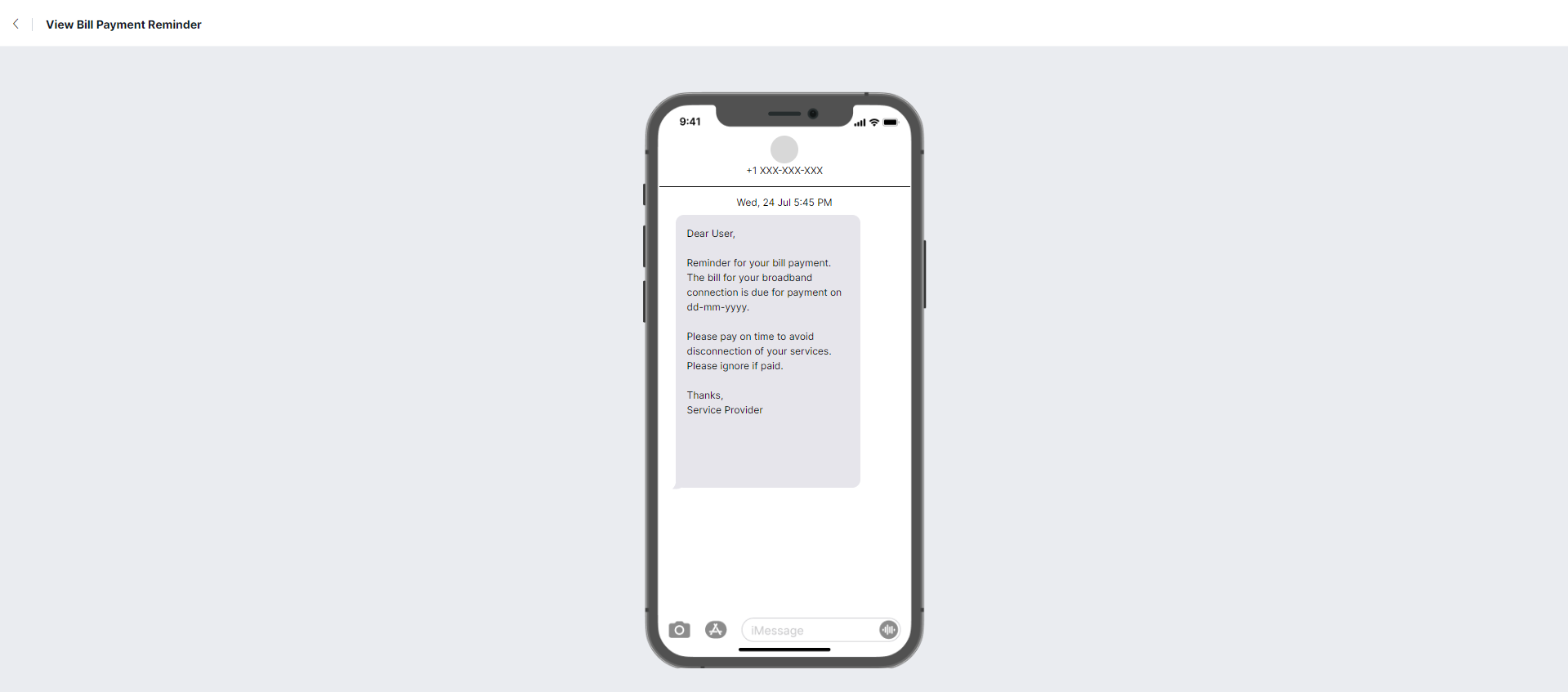 A preview message is displayed on the left side to show how the message will be displayed on the mobile device.