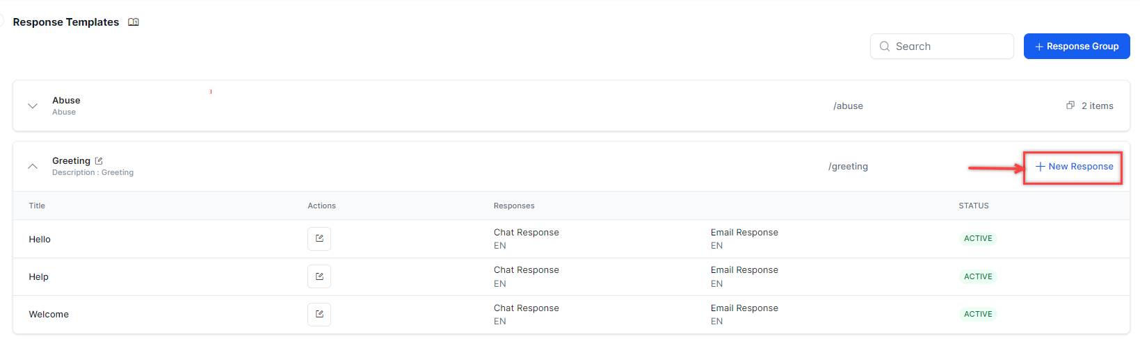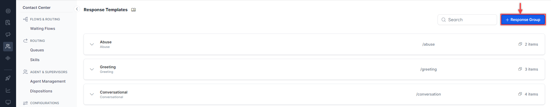 - Under Response Templates, click the desired response group name. This action displays a detailed view of the response group.
