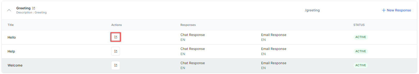 Find the response you want to update, and click the corresponding Edit icon under Actions.