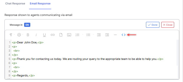 Response Templates are organized into Response Groups, to which agents need to be mapped for responses to be available to them in the Agent Console.