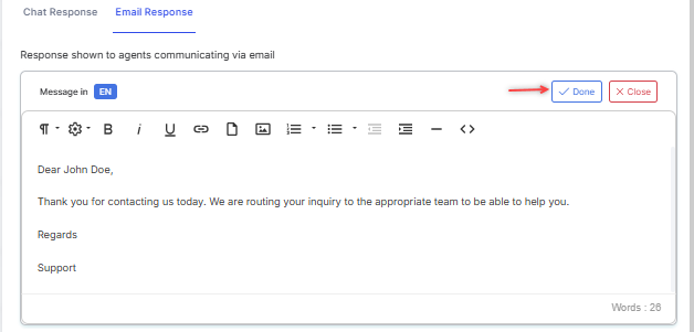 Response Templates are predefined (“canned”) messages that agents can use to speed up their delivery of information during customer interactions: welcome messages, salutations, notifications, and more. Response Templates are organized into groups and may be assigned to agents according to skills or agent groups.