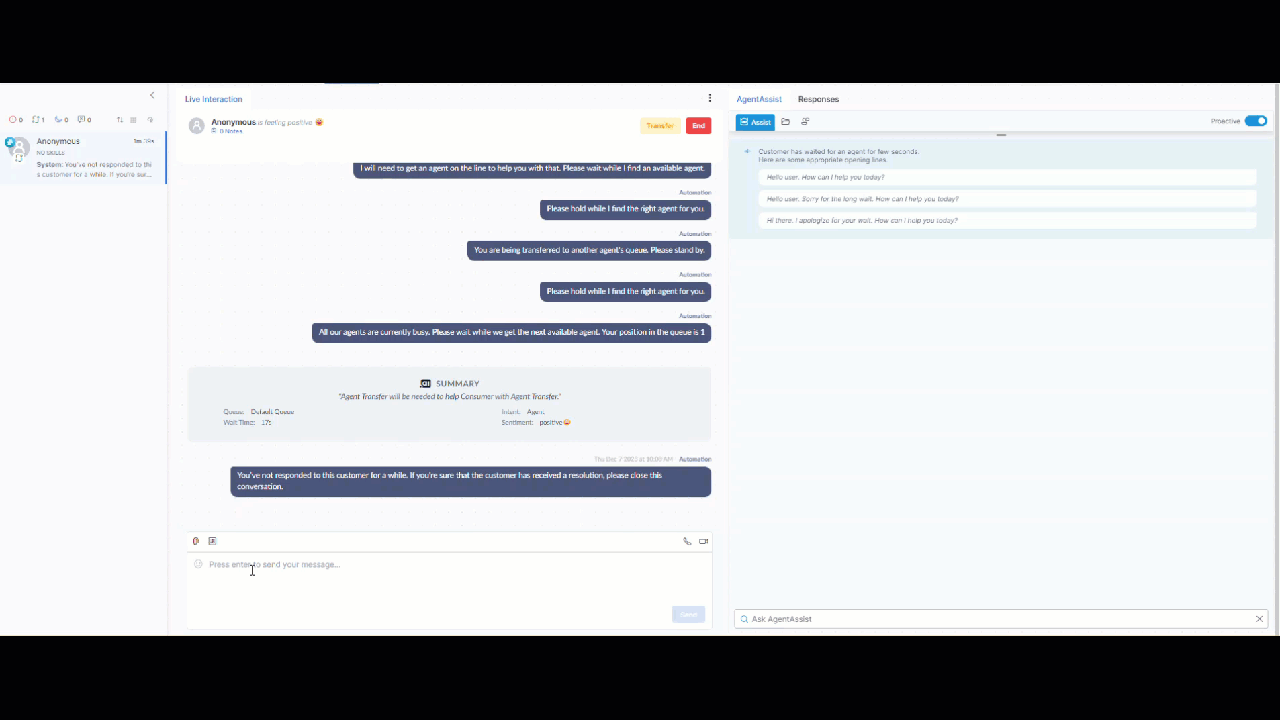 - Transfer: Interaction transfer to a manager, agent, or queue.