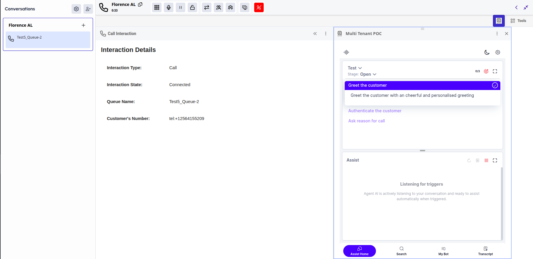 Make a call to the CCAI Number, purchased as part of the previous steps. After a successful Agent transfer of the call from CCAI to Genesys, the signed-in Genesys agent can accept incoming calls.