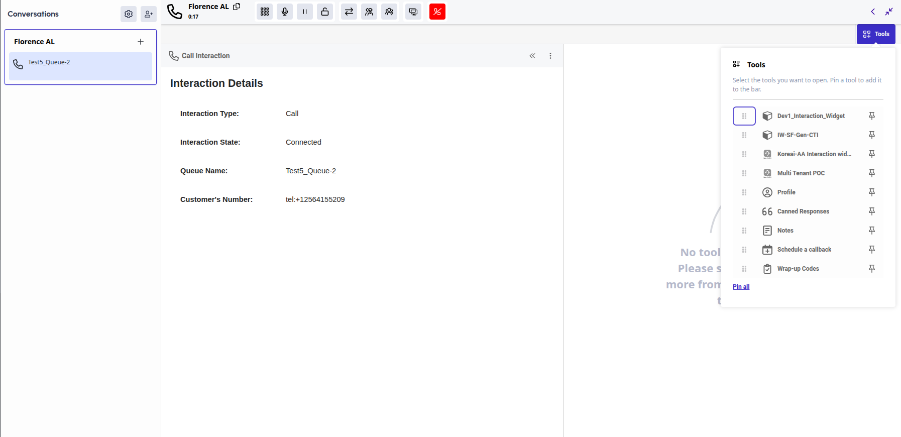 Click the available Tools section, and from there select the interaction widget you configured in the earlier steps..