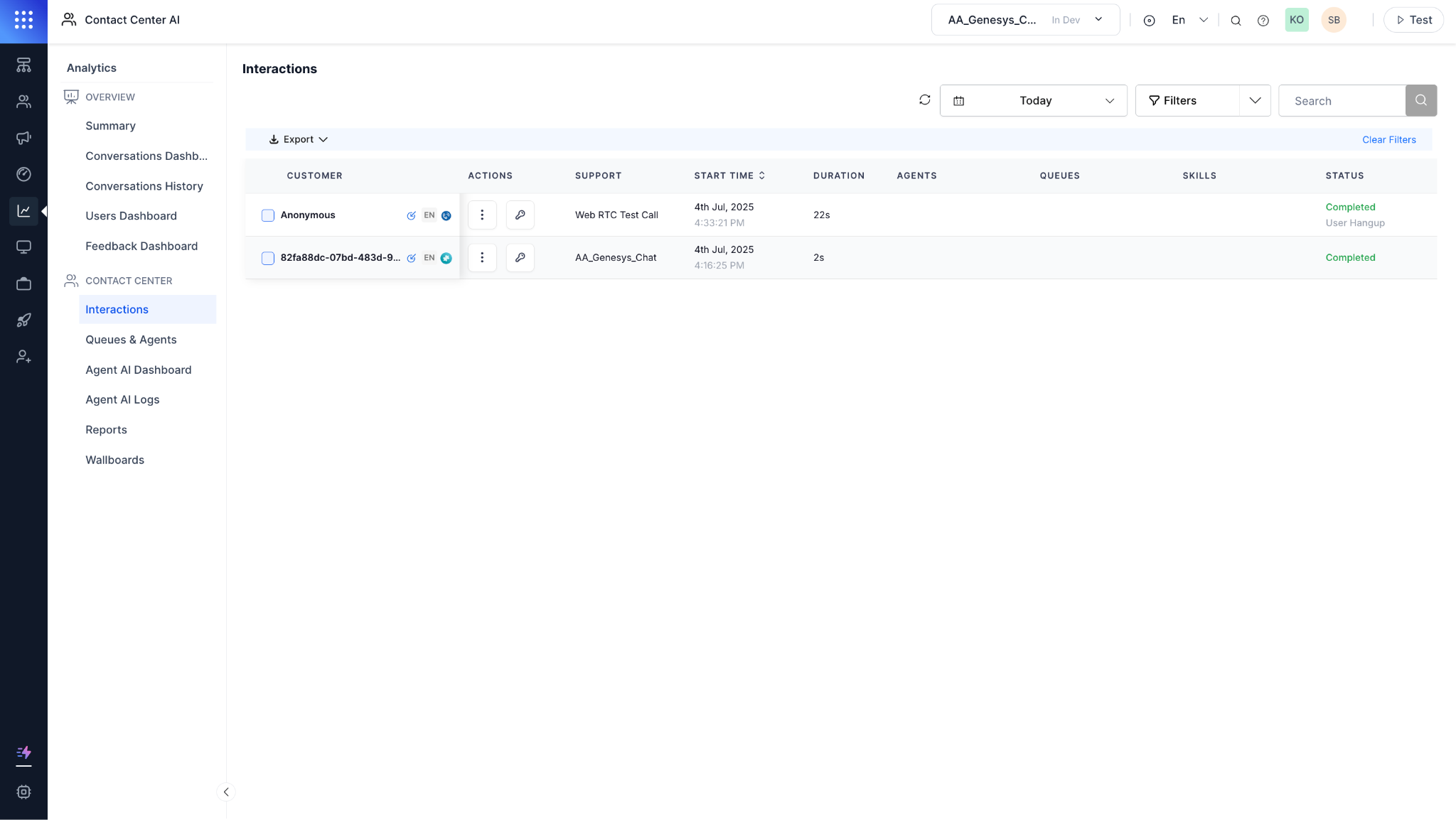 You can view all interaction details between the user and the bot during the call and the conversation between the user and the live agent after agent transfer in the CCAI dashboard.