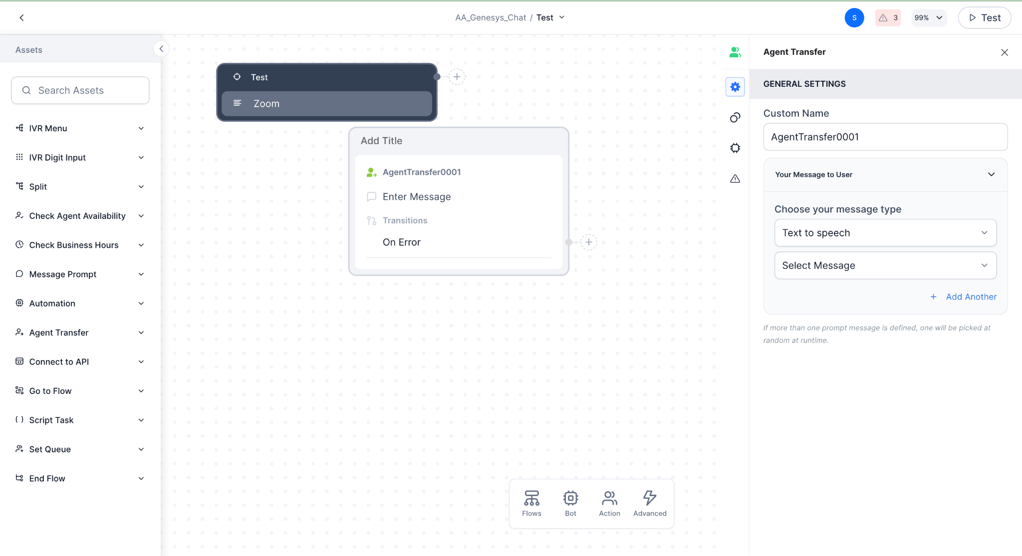 Zoom users can also invoke agent transfer from the Dialog Task using a message node.