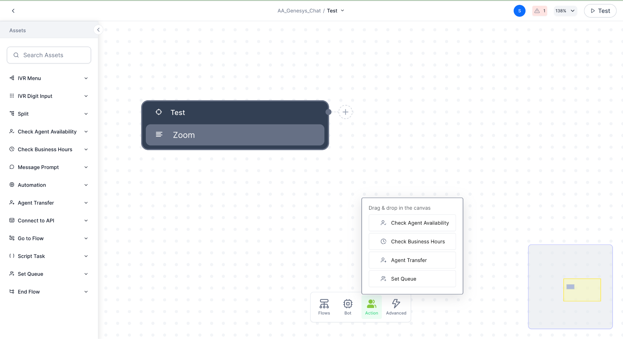 - Setup and Configuration: Kore.ai sets up and configures the integration between their AI Agent and ZCC. This involves installing specific connectors provided by Zoom and configuring the settings to establish a connection.
