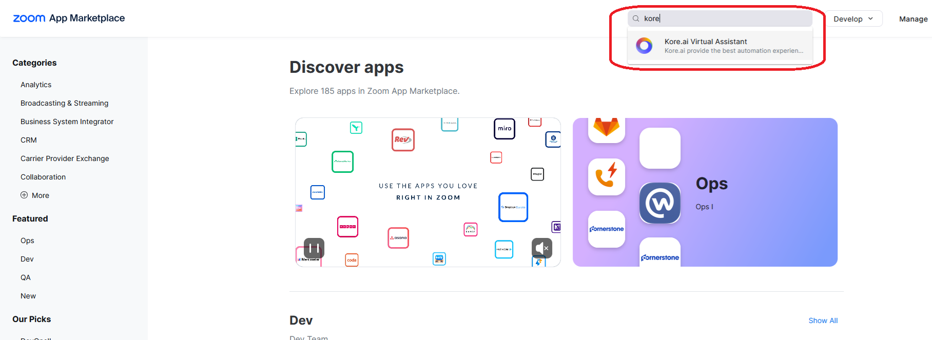 Kore Voice Automation Integration with Zoom Contact Center¶